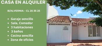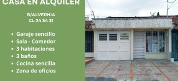 Arriendo sin administración: $1,550,000 Casa en arriendotuluá, comuna 2, alvernia100.0 m2Habit. 3Baños 3Garaje 1
