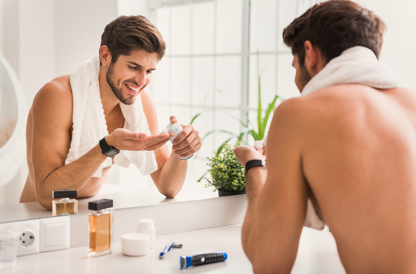 No nos digamos mentiras, los hombres no son partidarios de los diseños recargados ni coloridos, así que a la hora de decorar el baño basta que tengas a la mano algún frasco elegante (con la espuma para afeitar, la loción o el gel), una canasta con toallas y un cuadro llamativo junto a la bañera. Sí, en este caso y como muchas cosas en la vida. ¡Menos es más!✅