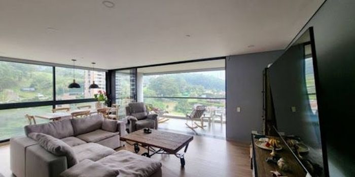 Apartamento ,128 m2, excelente vista, balcon grande tipo Terraza, Altos del poblado, cerca a iglesias, supermercado, fácil acceso a las palmas, tres alcobas, cocina integral , pisos en madera,dos garajes, cuarto útil, unidad completa, salón comedor, también se puede rentar amoblado, en 12.000.000, Andres Jimenez **********