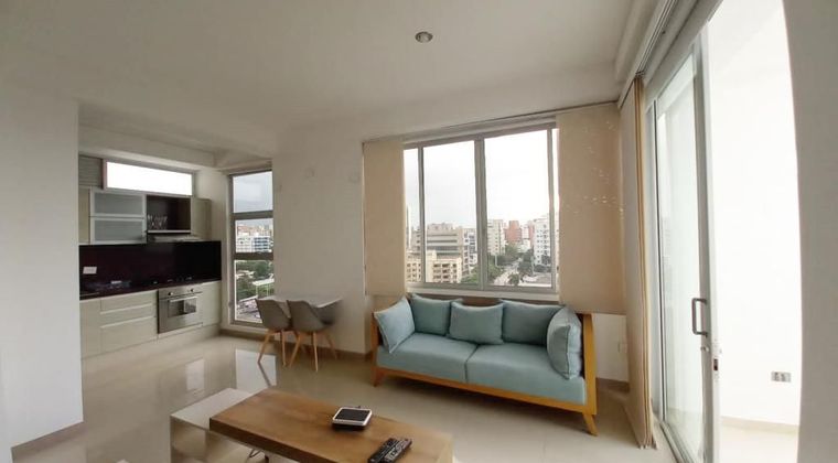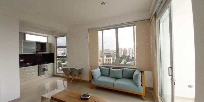 Apartaestudio amoblado de un solo ambiente, con un área de 34.66 m2, consta de balcón, cocina integral, zona de labores, un baño, un garaje cubierto, pisos en porcelanato, dotación completa, edificio cuenta con vigilancia 24 horas, ascensor, piscina, jacuzzi, gimnasio, zona infantil, excelente ubicación al norte, barrio Alto Prado.