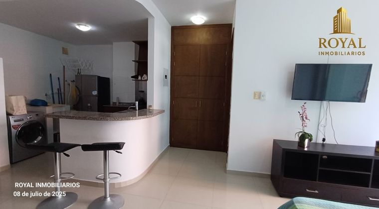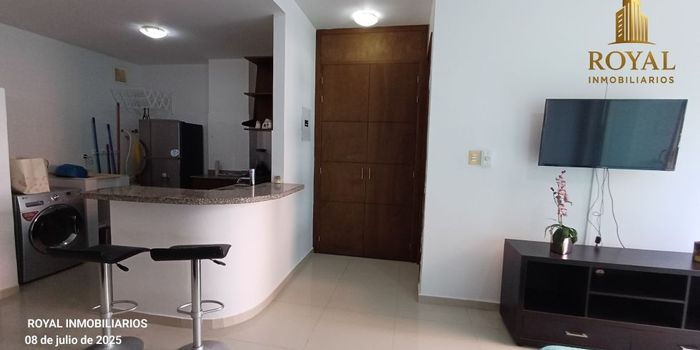 SAN VICENTE, BARRANQUILLA, alquilamos apartamento amoblado en sector residencial-comercial, cerca de centros comerciales, centros de salud, colegios, universidades, coworking, supermercados, canchas deportivas, clínicas, gimnasios, restaurantes, cafeterias. EDIFICIO Con planta electrica, 2 ascensores, celaduría 24 horas, piscina, terraza social, gimnasio. MEDIDAS APARTAMENTO Tiene 40 metros de área construida, esta en segundo piso, ubicación interna con vista lateral, construido en el año 2012. REPARTO APARTAMENTO Estilo loft, de un solo ambiente, cuenta con 1 baño, sala, comedor, 1 alcoba, cocina abierta, balcón, zona de labores, 2 garajes. TIEMPOS Alquiler desde 3 meses en adelante. PRECIO $ 2.000.000 incluye administración, NO incluye servicios públicos