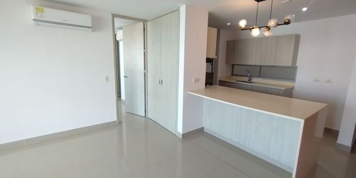 Apartaestudio de 70 metros, lado sombra, piso 8, aires, 1 alcoba independiente, cortinas, 2 baños, pisos en porcelanato, cocina integral abierta, calentador de agua, 1 parqueadero cubierto, cuarto útil, unidad con piscina, salón social, turco, sauna, gimnasio, zona BBQ, cancha de fútbol sintética, parque infantil y portería 24 horas.