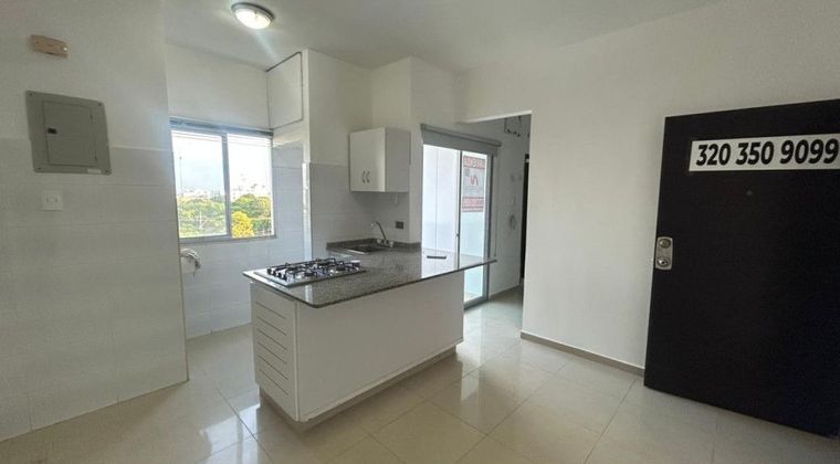 Aparta estudio con un área de 40 metros, consta de sala, comedor, balcón del lado de la sombra a toda hora, una alcoba con su closet, aire acondicionado, cocina integral, zona de labores, pisos en porcelanato, un garaje cubierto, edificio con citofono, ascensor, salón social, juegos infantiles, excelente ubicación al norte, barrio Porvenir.