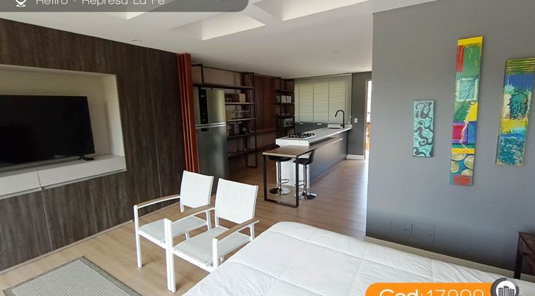 Apartaestudio amoblado para arriendo, sector represa de la fe, cuenta con un área de 45 m², un solo ambiente, baño cabinado, barra americana, cocina integral, red de gas, piso en madera laminada, zona de ropas con lavadora secadora, balcón, 1 parqueadero cubierto. Ubicado en unidad cerrada con conserje, puerta digital, ascensor, gimnasio, zonas verdes, sendero ecológico y Planta generadora de energías; fáciles y cómodas vías de acceso, rutas de transporte. Buscamos su tranquilidad. www.cityraiz.com CÓDIGO 17909
