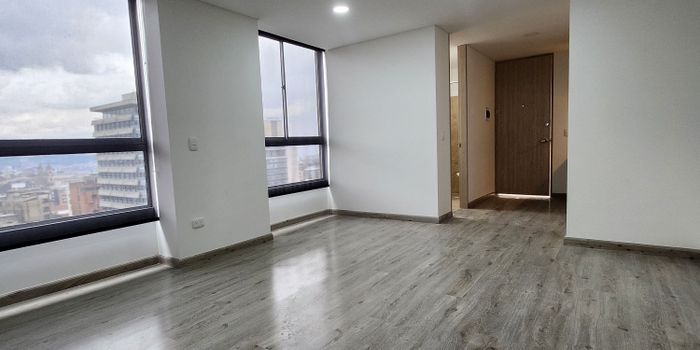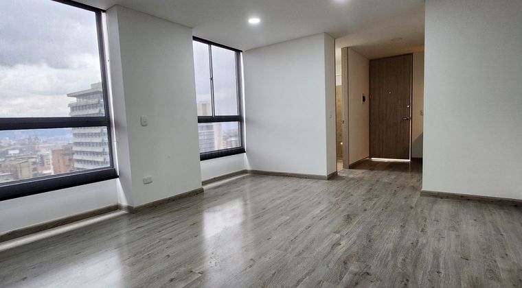 Espectacular apartaestudio excelente vista e iluminación, dos ventanales, consta de una habitación abierta en pisos de madera, cocina integral, alacenas superior e inferior, baño con ducha, calentador eléctrico, división en vidrio templado, espejo luz led, closet, blackout negros, espacio para estudio, para instalar nevera y lavadora. Edificio club house