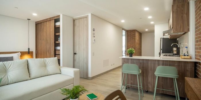 Kyux Studios ofrece apartamentos modernos de tipo loft diseñados para quienes buscan un estilo de vida práctico y contemporáneo sin renunciar al confort ni a una excelente ubicación. Con áreas que varían entre 42 metros y 46 metros , estos apartaestudios están completamente dotados, pensados para maximizar el espacio y ofrecer todo lo necesario para una vida cómoda en el centro de Medellín. Características del Apartaestudio brindan el equilibrio perfecto entre amplitud y funcionalidad, adaptándose tanto a solteros como a parejas. El diseño tipo loft maximiza cada rincón, creando un ambiente abierto y flexible para que puedas disfrutar de un espacio bien organizado y aprovechado. Los apartaestudios cuentan con espacios integrados y abiertos que incluyen una cocina moderna completamente equipada, área de descanso, y sala comedor, logrando una atmósfera acogedora y multifuncional. Todo esto con acabados de calidad