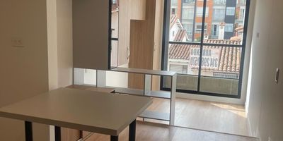 EDIFICIO BALMES SANTA BARBARA ARRIENDO cómoda oficina en el barrio Chico en el norte de Bogotá. - Área: 25 Mts2 - Estrato: 5 - Barrio: Chicó - Años de construido: Para estrenar - Parqueadero: 1 - Balcón: Sí (1) - Depósito: 0 - Piso: 3 - Vigilancia: 24/7 Aparta estudio mono ambiente, con cocina, habitación, sala pequeña, 1 baño.