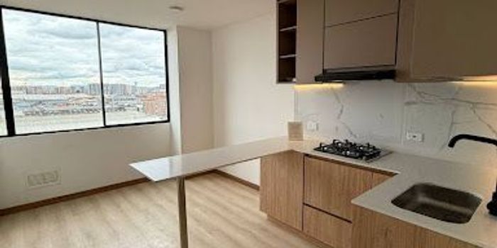 Bonito apartaestudio nuevo de 42 mtrs, ubicado en excelente zona residencial y comercial, consta de 2 habitaciones, closets, 1 baño, cocina, zona de ropas, sala comedor, parqueadero comunal, ascensor, piso 9