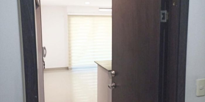 Aparta-estudio con un área de 40.77 metros, iluminado y fresco, consta de sala comedor con mueble en madera empotrado y cortina, balcón con vista externa hacia la cra 47, cocina integral, zona de labores cerrada, alcoba con closet y baño interno y cortina, un parqueadero asignado y deposito, el edificio tiene ascensor, vigilancia 24/7 horas, gimnasio, jacuzzi, salón social, excelente ubicación al norte, barrio San Vicente.