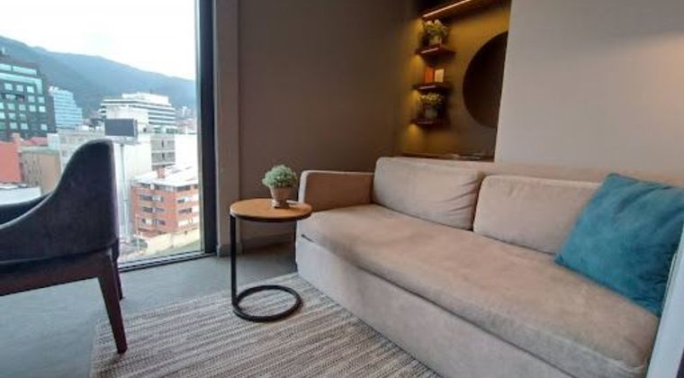Ubicado en Chicó Norte, cerca de la Av. Calle 100 con Cra. 9ª, este apartamento amoblado en 9.º piso combina lujo, comodidad y una ubicación privilegiada en una de las zonas más exclusivas y seguras de Bogotá. Cuenta con 40 m² muy bien distribuidos en 1 habitación con clóset dotado, 2 baños, estudio, sala-comedor, cocina integral y zona de ropas. El edificio ofrece parqueadero comunal sujeto a disponibilidad, apartamento con deposito, conjunto con ascensores, recepción, piscina climatizada, sauna, turco, gimnasio con equipos de última tecnología, coworking, billar, terrazas, salones sociales y restaurante. Además, la administración está incluida. Un espacio ideal para vivir con estilo, confort y todo al alcance.