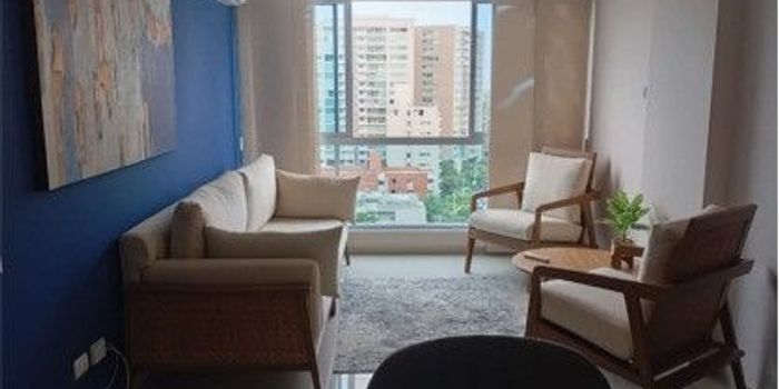 Descubre este apartaestudio amoblado de 45 metros cuadrados, ubicado en una zona residencial tranquila distribuidos en sala-comedor, cocina integral, 1 habitación, 1 baño, area de labores, ofrece comodidad. Además, cuenta con ascensor, salon social, gimnasio, planta electrica, zona infantil y parqueadero. Con vigilancia privada 24/7. ¡Contáctanos para conocer más detalles y agendar una visita!