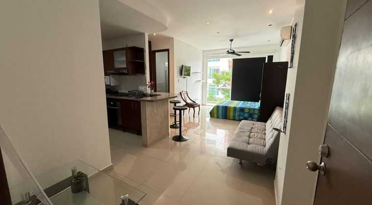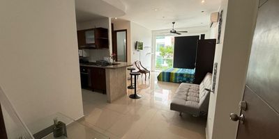 Oportunidad en arriendo!!!Moderno y acogedor Aparta estudio amoblado, ubicado en sector estratégico al norte de Barranquilla, edificio de una torre, con portería permanente, dos ascensores, amplio lobby, piscina, terrazas y gimnasio, cercano al Centro comercial Viva, supermercados, restaurantes, iglesia Torcoroma, rodeado de vías de fácil acceso, El aparta estudio se destaca por su moderno diseño interior, cuenta con sala, cocina abierta, área de labores, totalmente equipado, una alcoba con balcón, closet, baño individual, adicional le corresponden dos parqueadero en nivel sótano, Es la opción ideal para vivir en poca área con todas las amenidades y la mejor ubicación, No pierdas esta oportunidad, agendemos cita!