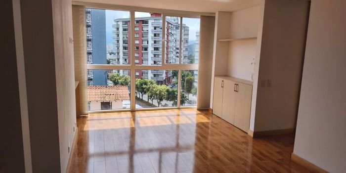 Apartaestudio amplio e iluminado, de un solo ambiente, cuenta con sala - comedor, baño, calentador, cocina semiintegral, gas natural, Parq. cubierto en sótano 2, ubicado en zona comercial y residencial.