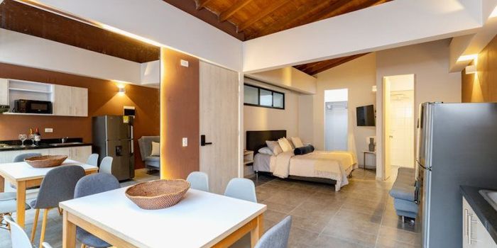 aparta estudio cuarto piso con ascensor, nos ofrece una área de 32.30 ubicado en el sector de Boston, un solo ambiente cocina integral, red de gas, zona de ropas 1 baño, paga una administración de $180.000 mensual, funciona como airbnb, cerca a la plaza de flores y centro comercial tranvía