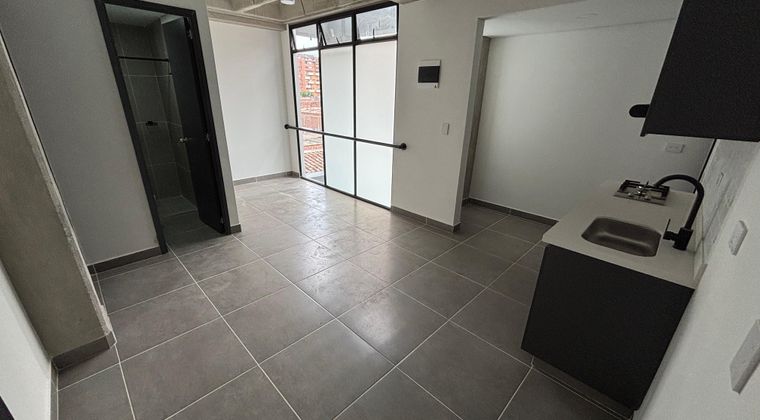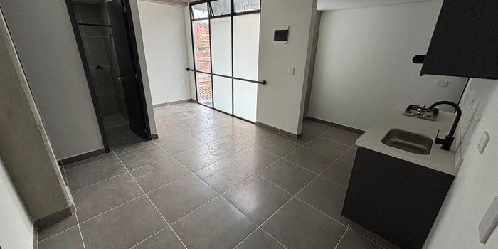 apartaestudio disponible en venta en Sabaneta. sector calle larga. Cuenta con un área de 33 mts2. 1 habitación con closet, 1 baño cabinado, Sala comedor, Ventanal, Cocina, Zona de ropas. piso 8 con ascensor, estrato 3
