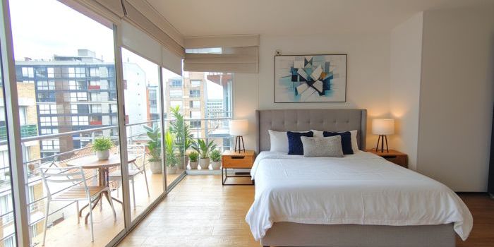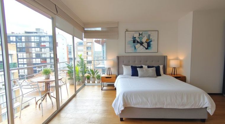 Apartaestudio un solo ambiente, con BALCÓN, VISTA EXTERIOR, zona de lavandería independiente, edificio con vigilancia 24/7 en quinto piso , con ascensor, CON PARQUEADERO Y DEPÓSITO , con parqueadero de visitantes, zona de lavandería comunal, salón social y terraza BBQ. en calle residencial, a media cuadra de la av, Séptima