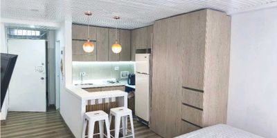 Código 9401FR507 , en venta Apartaestudio monoambiente, cuenta con un baño completo, cocina equipada tipo americana, zona de lavandería , closet, amplio ventanal vista interior, no tiene parqueadero, remodelacion total, el apartamento no tiene gas natural pero el edificio si, se le puede hacer la instalacion. El edificio cuenta con vigilancia y recepción las 24 horas, ascensor. Ubicado cerca de transporte público, centros comerciales, bancos, restaurantes.