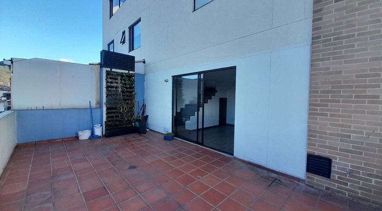Apartaestudio duplex exterior, iluminado, cálido, cómodo, con una terraza de 25 m. para tus mascotas o reuniones sociales. Cuenta con habitación independiente con closet y baño privado, sala comedor, cocina integral a gas natural, zona de lavandería independiente, baño social, parqueadero cubierto independiente y deposito. Edificio inteligente, con salón comunal y BBQ.