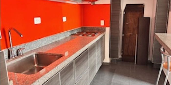 area 47 mts, piso alto lateral, Alcoba con división, un baño completo, sala, comedor, cocina abierta con estufa eléctrica, no tiene horno convencional porque no hay gas en el edificio, no tiene lavandería el apto pero el edificio tiene lavandería comunal con lavadora y secadora y costo por ciclo $7000, un baño completo, parqueadero cubierto, no tiene depósito, no tiene parqueadero de visitantes, apts c-dos