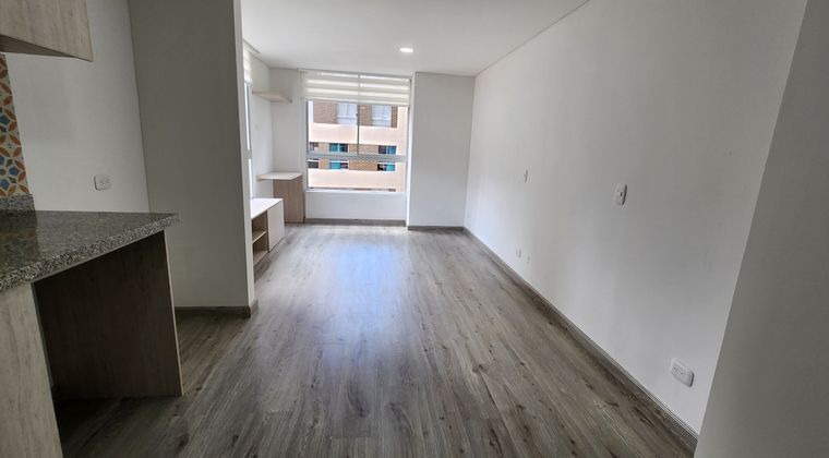 Hermoso apartaestudio, un dormitorio abierto, closet, persianas modernas, cocina integral, salpicadero, alacenas superior e inferior, muebles de almacenamiento, espacio con mesa de comedor, mueble de entretenimiento, un baño con mueble de almacenamiento, división en vidrio templado. Precio negociable