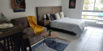 Venta Apartaestudio estilo loft de 25 M² a puerta cerrada, Amoblado y equipado , Piso 12 vista de ensueño a los cerros y a edificaciones representativas de Bogotá. Edificio con recepción 24 horas , 4 ascensores. Amenidades: dos terrazas con vista espectacular, zona BBQ, coworking, zonas de alquiler de lavadoras, jardines de encuentro, salón de juegos. Ubicado en la Candelaria centro histórico cerca a City U, Alianza Colombo-Francesa, Parque de los Periodistas, Cinemateca Distrital, Centro Colombo Americano, Monserrate, Estación Transmilenio Las Aguas y Universidades. Con código y trayectoria en RBNB.