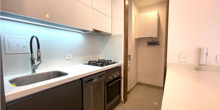 Se arrienda espectacular aptostudio con una gran terraza de 30mts, de una habitación con baño privado, walking closet, cocina abierta que se integra con la sala comedor con salida a la terraza, zona de lavandería independiente, baño social, puerta de seguridad. Dos parqueaderos en línea y depósito. Puerta de seguridad. Edificio con una espectacular terraza con bbq y 6 parqueaderos visitantes. Leasing Bancolombia.
