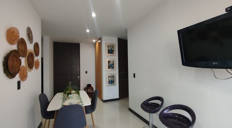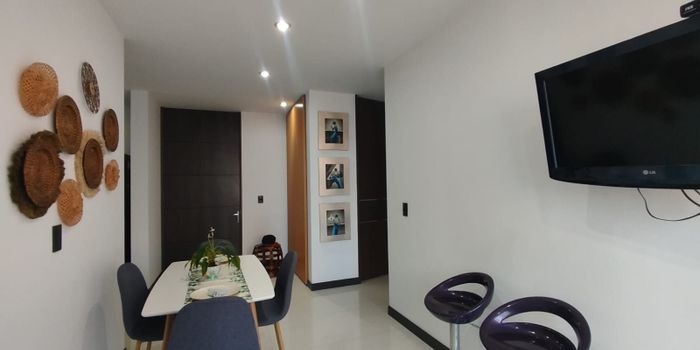 Apartaestudio en venta con muy buena ubicación en Pinares de fácil acceso, cuenta con salacomedor, una habitación y dos baños, pisos en porcelanato, cocina integral, estufa y calentador a gas, zona de ropas. En conjunto cerrado con piscina, gimnasio, salón comunal, sauna turco, parques infantiles, placa polideportiva, zonas verdes y un parqueadero cubierto. Vigilancia y portería las 24 Horas. Inmueble sujeto a verificación de disponibilidad