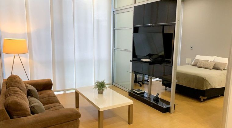 Excelente Apartaestudio Acabados de Lujo, dos ambientes, Baño y Vestiers Cocina Tipo Americana, Garaje Cubierto, Mueble de Television que gira 180 grados , el Edificio tiene 2 ascensores, plata electrica zona de Piscina en el ultimo Piso informes al ********** **********