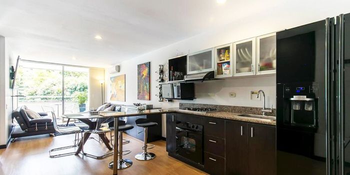 Apartamento amoblado en arriendo en unidad cerrada con facil acceso desde la av principal, cercano a servicios complementarios y rutas de transporte publico. Cuenta con piso en madera, sala comedor, 2 alcobas con baño en la principal, cocina integral abierta tipo americano, balcon y parqueaderos. Cuenta con aire acondicionado. Gym, salon social con amplia terraza, zonas verdes, vigilancia, citofonia, porteria 24 horas y circuito cerrado de tv. *Inmuebles sujetos a verificación de disponibilidad.*