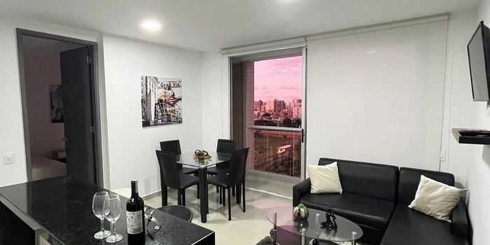 Se arrienda apartamento totalmente amoblado de 70 m2, cuenta con sala comedor, balcon, cocina integral, zona de labores, baño social, dos alcoba cada una con su baño. Edificio cuenta con lobby, gimnasio, salón social, bbq, business center, piscina, excelente ubicación al norte, cerca a centros comerciales, colegios y universidades, barrio Altamira.
