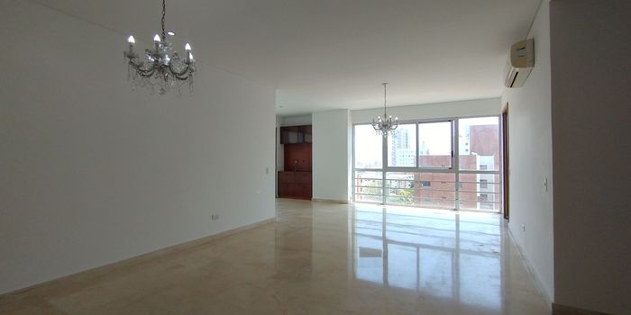 Apartamento en arriendo ubicado en Riomar. Cerca a Centros comerciales, supermercados, restaurantes, hoteles, parques, iglesias, colegios. Cuenta con 3 habitaciones, 4 baños, baño en cada alcoba, baño social, balcón en la sala, estar de tv, hall de acceso, sala, comedor, cocina integral cerrada con estufa, campana y horno; pisos en mármol, granito y cerámica, 3 aires acondicionados mini Split, zona de ropas, planta eléctrica total, zona BBQ en último piso, piscina, gimnasio, salón comunal, parques infantiles, zonas verdes, portería y vigilancia 24 horas.