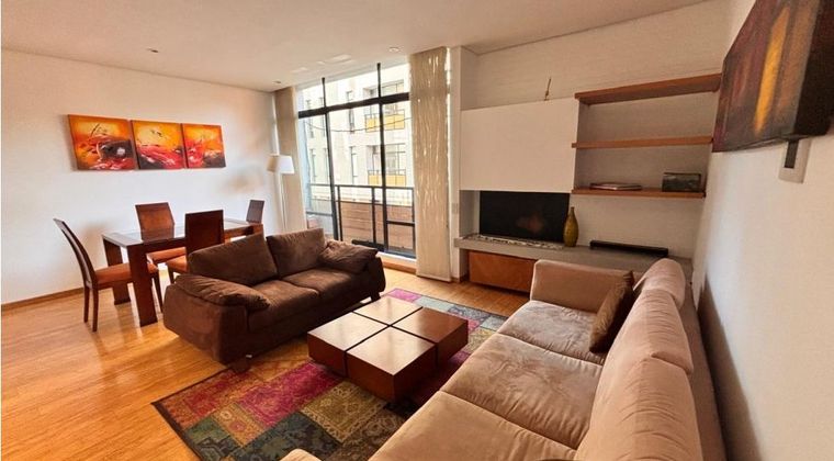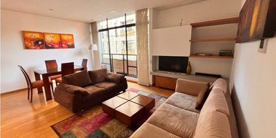 amoblado area 92 mts, dos habitaciones, dos baños completos, sala comedor con chimenea, cocina abierta, zona de lavanderia, dos parqueaderos independientes, deposito, edificio con squash, gimnasio, terraza con BBQ, zona Húmeda, salón de reuniones. canon incluida la administracion apts c-dos