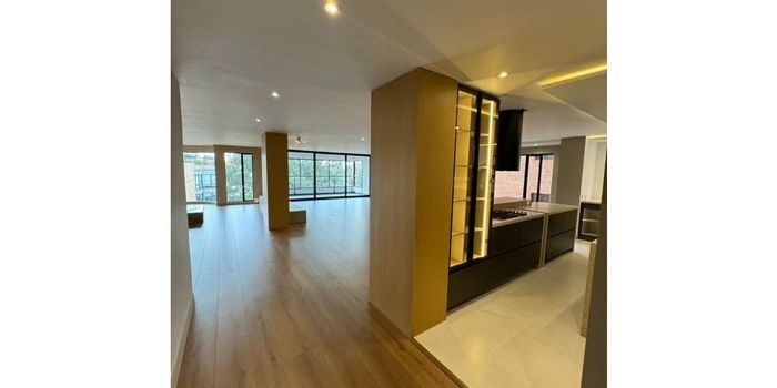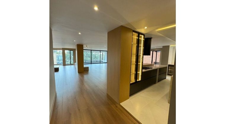 remodelado, area 305 mts, piso alto exterior, cuatro habitaciones, dos con baño iinterno, sala con chimenea y balcon, comedor, estudio, Estar de TV, cocina abierta con lavavajillas y hornos, zona de lavandería con lavadora y secadora, cuarto y baño de servicio, baño social, tres parqueaderos Independientes, depósito amplio, edificio con zonas húmedas, salón de escoltas, salón comunal, gimnasio, parqueaderos de Visitantes. acabados AAA, apts c-dos