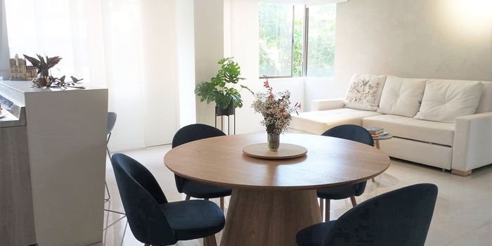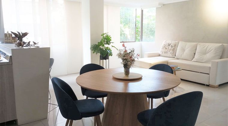 Apartamento amoblado en arriendo en unidad cerrada cerca a parques, clinicas, restaurantes y rutas de transporte publico. Entorno muy tranquilo y de poco ruido. Piso en marmol, sala comedor, estudio, 3 alcobas con baño en la principal, cocina integral abierta tipo americano, y parqueaderos lineales cubiertos. Piscina, salon social, parque infantil, amplias zonas verdes, vigilancia 24 horas, citofonia y circuito cerrado de tv. *Inmuebles sujetos a verificación de disponibilidad.*