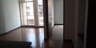 Apartamento de 56 mts cuadrados en piso 2 exterior, tiene cocina amplia, abierta con zona de lavandería, sala comedor con balcón con vista hacia la calle, 2 alcobas alfombradas, la zona social con pisos laminados, 2 baños, uno de ellos en la alcoba principal, 1 garaje, ascensor, ubicado a media cuadra de la estación de Transmilenio Universidad Nacional.