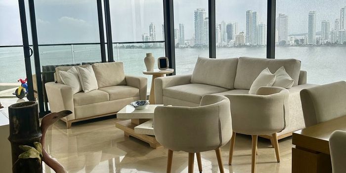 Edificio PortoMarine Área 200 mts2 3 alcobas con Baños Baño Social Sala Comedor Salón de estar Cuarto de servicio con baño Zona de Labores 1 garaje parqueadero 1 locker Áreas comunes 2 Piscinas Salón social Coworking Baño turco Gimnasio Valor de arriendo $18000.000 sin muebles Valor amoblado $20 millones