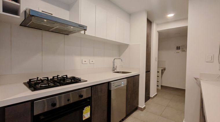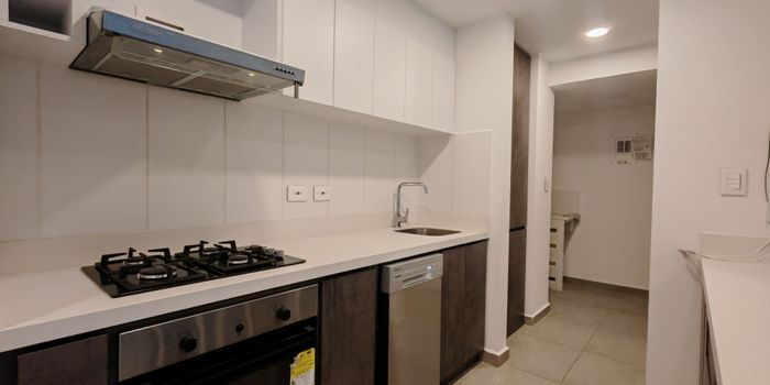 Moderno apartamento en Arriendo ubicado en el piso 2, con 2 habitaciones, 2 baños, cocina integral equipada, sala-comedor con excelente iluminación natural y balcón con vista panorámica. Dispone de zona de ropas independiente, calentador a gas y parqueadero privado. El conjunto cuenta con vigilancia 24 - 7, piscina para adultos y niños, gimnasio, salón social, zona BBQ, parque infantil y amplias áreas verdes