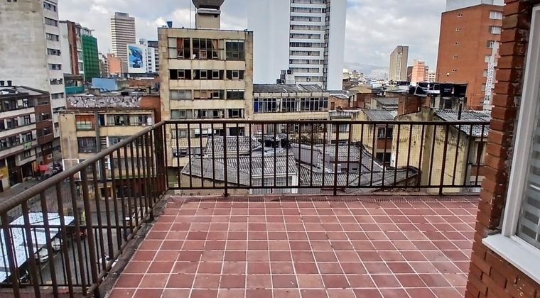 Centro, excelente apartamento de una alcoba con closet, cocina eléctrica, baño, sala comedor, con una terraza de 37M2 para uso exclusivo del apartamento. Ideal para estudiante, ejecutivo recién graduado o pareja sin niños, pisos en cerámica, muy amplio, iluminado, ventilado. Cerca a transporte público, transmilenio, Hotel Tequendama, zona bancaria, oficinas gubernamentales, oficinas empresariales, restaurantes, museo, Cra 12 No. 23-41, detrás de Hotel San Francisco. NO TIENE GARAJE.
