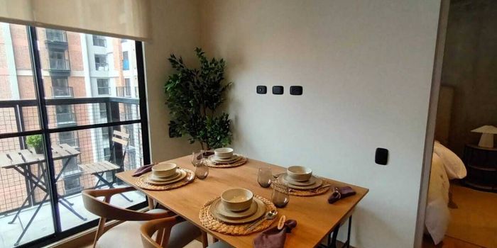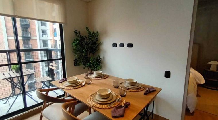 Amplia zona social con acceso a un balcón con vistas impresionantes Cocina abierta moderna con nevera , horno microondas y lavadora secadora. Opción de amoblamiento por solo $750.000 pesos adicionales Nota: Parqueadero y depósito tienen un costo adicional.