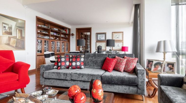 Espectacular Pent House dúplex, ubicado en exclusivo conjunto de Santa Bárbara Alta, con gimnasio, parque infantil, salón comunal y zona de BBQ, cuarto para escoltas y sendero para caminar, muy cerca al centro comercial Hacienda Santa Bárbara. En el primer nivel encontramos el hall de acceso de doble altura, baño social, sala con dos ambientes, estudio con balcón, comedor independiente con balcón, cocina integral con comedor auxiliar, zona de lavandería y despensa. En éste mismo nivel encontramos 3 habitaciones, la principal con walk-in closet y baño en suite con jacuzzi y dos habitaciones secundarias con closets y baños en suite. En el segundo nivel encontramos un Family room con chimenea tradicional y dos terrazas con vista a los cerros Orientales, 2 habitaciones con closets y baños en suite, un estudio con luz natural y acceso a terraza y una sala de cine con capacidad para 9 personas. Cuatro garajes y un depósito complementan la propiedad. ¿Qué esperas para age...