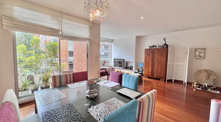 Arriendo apartamento en Chicó de 150m2 a una cuadra del Parque del Virrey, zona norte. Exterior. Piso dos alto. Ascensor directo. Excelente distribución y acabados. La zona social y el comedor son espacios muy amplios, con grandes ventanales y vista abierta. Excelente iluminación natural y salida al balcón. Cocina independiente con salida al patio, lavandería y CBS. Tres habitaciones con baño. Baño social. Dos parqueaderos independientes. Parq. visitantes. Excelente ubicación en la zona. Calle 90. Zona residencial, buena movilidad peatonal y vehicular.