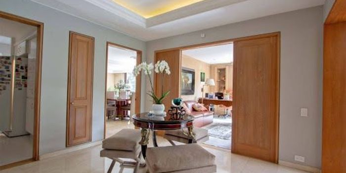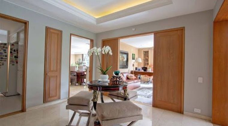 Exclusivo apartamento ubicado en el prestigioso sector de chico reservado diseño esquinero que garantiza luz natural y ventilación en todos los espacios cuenta con una amplia zona social , sala y comedor independiente, estudio, cuenta con 3 amplias habitaciones cada una con baño, estar de alcobas , cocina integral ,zona de lavandería independiente , cuarto y baño de servicio, un balcón, 3 parqueaderos y depósito, por su ubicación esquinera tiene vista al cerro y la ciudad, el edificio tiene un parque aledaño con excelente zona verde .