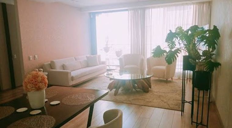 lindo apartamento amoblado en ubicación privilegiada del chico cerca a vias principales como la calle 100 ,hoteles, restaurantes, bancos, cuenta con un área de 103 m2, consta de dos habitaciones con closeth , tres baños incluyendo el auxiliar, sala comedor con balcon , piso laminado cocina integral , servicio de caldera, zona de lavado de ropas , estrato 6, tres ascensores dos parqueaderos en servidumbre y depósito.