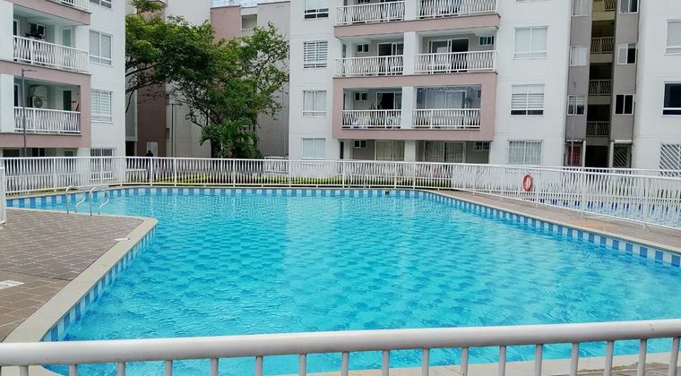 Rento Hermoso Apartamento en el barrio Ciudad Pacifica en el moderno edificio Aurora, con cómodas vías de acceso, cerca a colegios, universidades. Este inmueble de 75 metros cuenta con 2 habitaciones, 1 estudio abierto, 2 baños, 1 balcon con vista a la calle, cocina integral, zona de oficio y sala comedor, además el apartamento cuenta con calentador a gas y 1 parqueadero propio. La unidad cuenta con seguridad 24 horas, parqueadero de visitante, piscinas, salón social, GYM, ascensor, cancha mixta, hermosas zonas verdes y salón de juegos.
