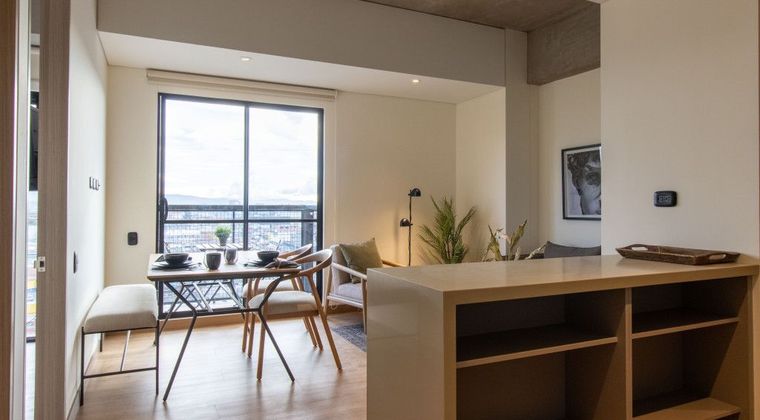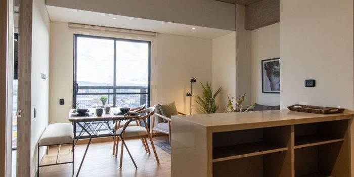En Arriendo Apartamento de 2 habitaciones amobladas, 103 unidades disponibles desde 58 hasta 69 m², en edificio moderno de 22 pisos ubicado en el borde de Ciudad Salitre, zona de alta valorización y excelente conectividad. Diseño contemporáneo con techos en concreto expuesto, pisos vinílicos tipo madera, amplias ventanas y altura aprox. 2,5 m que brindan mayor luz y amplitud. Cocina integral con gabinetes completos, despensa, barra con detalles en azulejo y línea blanca incluida: estufa y horno empotrados, campana, refrigerador integrado y microondas. Incluye blackout y cerradura electrónica. Zonas comunes en pisos 2, 3 y 22: terraza, coworking 24/7, salas privadas, gimnasio, spa de mascotas, juegos, parqueadero visitantes, room party, piscina, chef table y sundeck. Seguridad CCTV 24/7. Precios sujetos a disponibilidad. ¡Agenda tu visita!