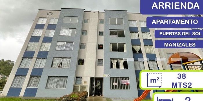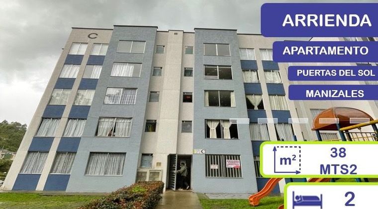 PUERTAS DEL SOL, MANIZALES - ARRENDAMIENTO En la considerada la ciudadela más importante del ciudad, contamos con un inmueble de dos (2) habitaciones, un (1) closet, salacomedor, un (1) baño, cocina integral y pisos en cerámica; este no cuenta con gas domiciliario. El apartamento está ubicado con cercanía a tiendas, transporte público, zona de comidas rápidas y restaurantes cercas, adicional que posee buenas zonas de parqueo comunal y juego de parques infantiles.