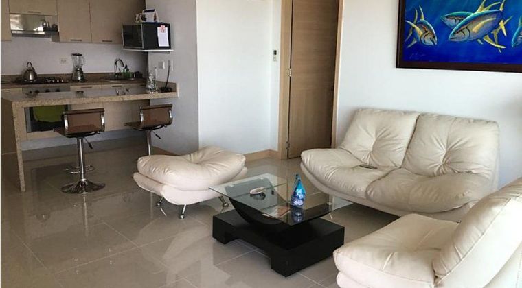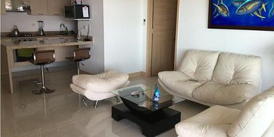 Balcón vista al mar, sala, comedor, cocina, área de labores, baño del servicio 2 habitaciones, 2 baños, la habitación principal tiene Wooking Closet, 1 parqueadero, el edificio tiene lobby, salón Wifi, Salón social, gimnasio, turco, sauna, jacuzz, piscina para adultos y niños, parque infantil y zonas verdes. Se renta amoblado, dentro del valor del arriendo están incluidas las expensas de administración. Disponible en Diciembre de 2025