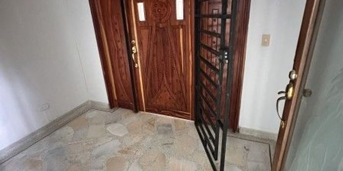 Edificio de 5 pisos SIN ascensor: acceso por escaleras hasta el 5° piso. El apartamento es dúplex (dos niveles internos; el nivel superior se siente como “6°” por altura). Primer nivel: hall de entrada, sala-comedor extra amplia, baño completo de lujo, muebles de biblioteca/almacenamiento, cocina enorme con mesón tipo isla, zona de ropas y cuarto de servicio con baño. Segundo nivel: balcón con vista panorámica y excelente brisa; 2 habitaciones auxiliares amplias con baño privado (tina y ducha) y habitación principal muy grande con 2 closets y baño completo con ducha y tina. Parqueadero privado en sótano. Acabados de lujo, puerta blindada y carpintería en granadillo.