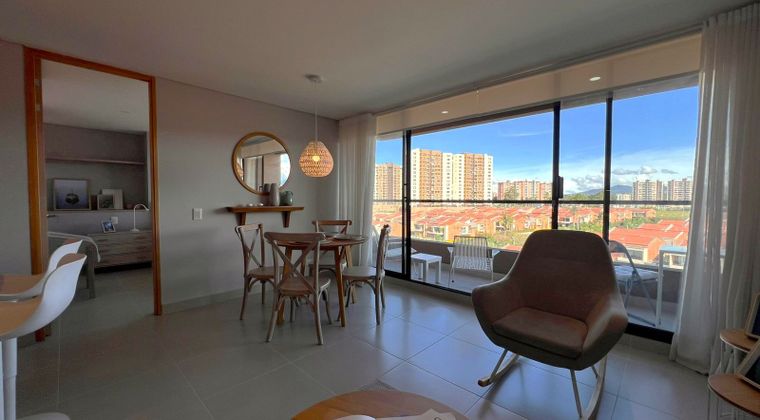 Apartaestudio AMOBLADO en arriendo en unidad cerrada, sector campestre, poco flujo vehicular y tranquilo, cerca a parques, supermercados, iglesias y restaurantes. Piso en cerámica, sala comedor, 1 alcoba con vestier, baño social, cocina integral abierta tipo americano, zona de ropas, balcón y parqueadero independiente cubierto Conjunto cerrado con ascensores, gimnasio, salón social, sauna, turco, zonas verdes, vigilancia y portería 24 horas, citófono y circuito cerrado de TV.inmuebles sujetos a verificacion de disponibilidad