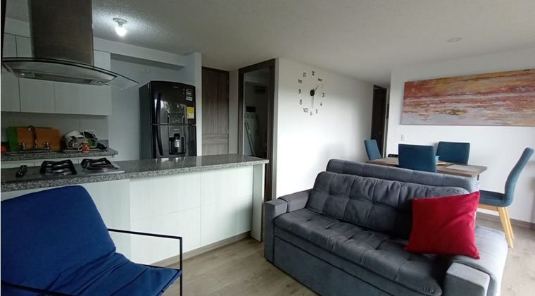 Se arrienda apartamento totalmente amoblado en Rionegro, sector Los Colegios, una zona tranquila, segura y campestre. El inmueble cuenta con setenta y un metros cuadrados, distribuidos en dos habitaciones y dos baños con lavamanos y espejo. La alcoba principal tiene cama doble de dos por dos, mientras que las habitaciones auxiliares cuentan con camas sencillas. Incluye cobijas, sábanas, toallas y tendidos completos. La sala comedor está completamente amoblada, cuenta con dos televisores, cocina integral totalmente dotada con estufa mixta, campana extractora, nevera, y zona de ropas con lavadora. También dispone de calentador de paso, cortinas y blackout un amplio balcón con vista campestre. Incluye parqueadero privado cubierto. La unidad residencial ofrece excelentes zonas comunes como piscina, juegos infantiles, cancha deportiva y está ubicada cerca de la unidad deportiva, con fácil acceso al transporte público y vías principales. Ideal para quienes buscan comodidad, tranquilidad y un entorno natural.